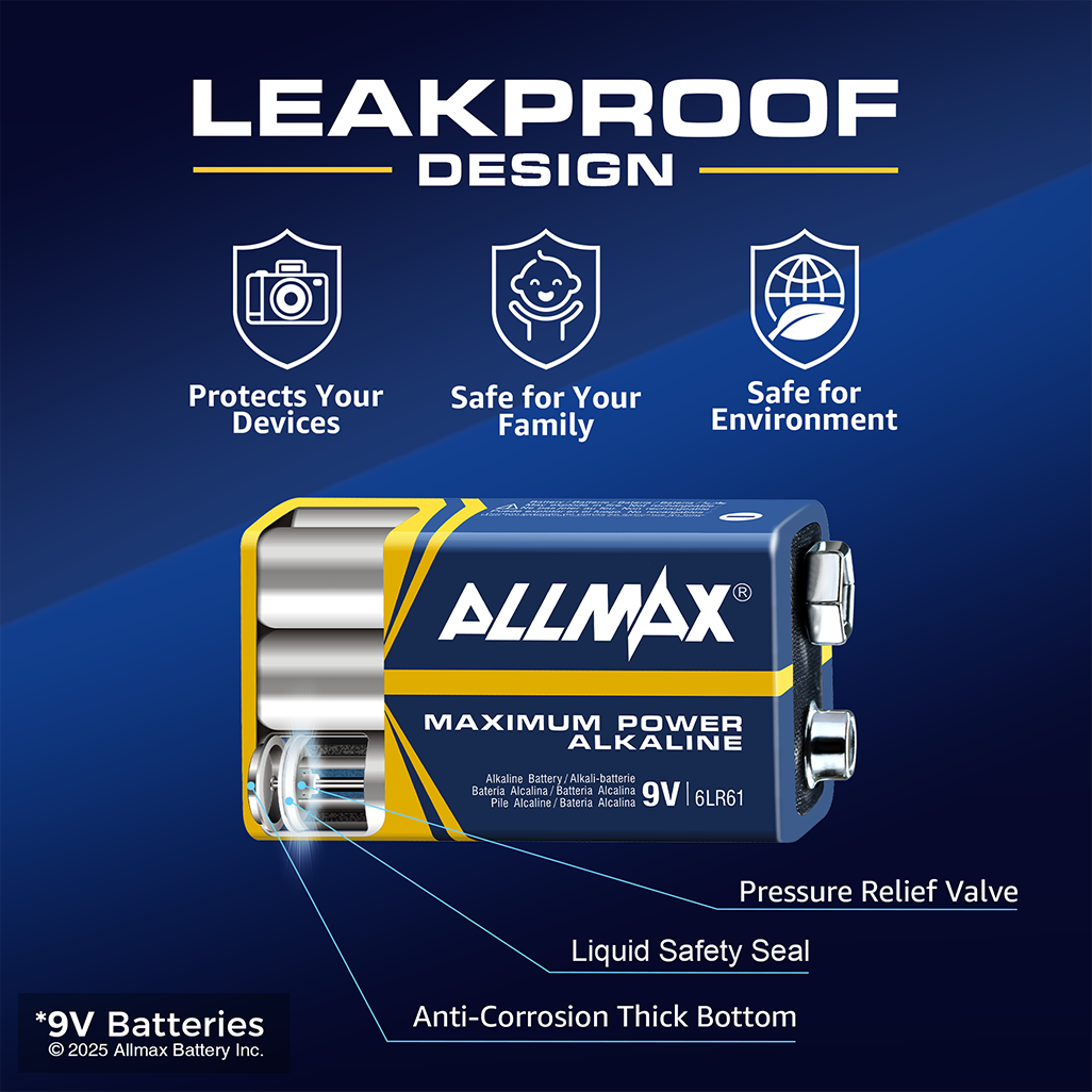 Allmax 9V Alkaline Batteries are designed to deliver dependable power and ultra long-lasting performance. These batteries are commonly used to power smoke alarms, detectors, and remotes.