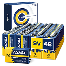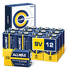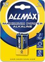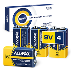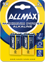 Allmax Maximum Power 9V Alkaline Batteries are available in a variety of packaging options.