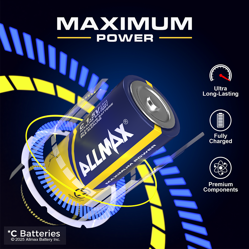 Allmax Maximum Power C Alkaline Batteries are premium-grade, high-performance batteries