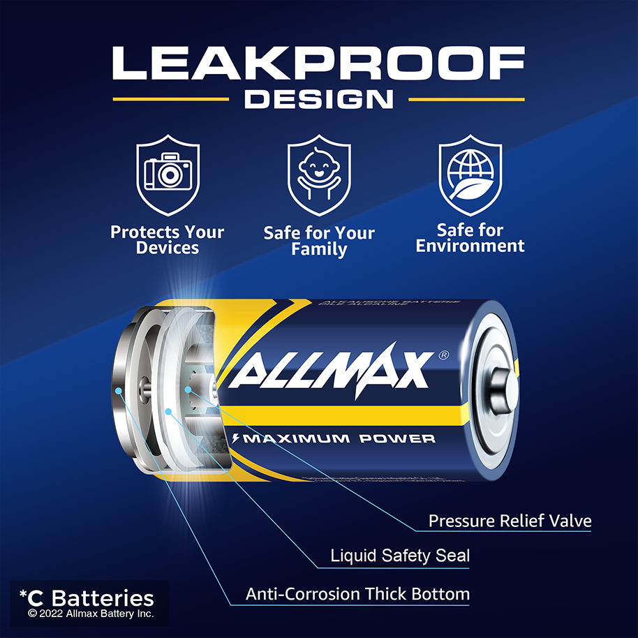 Allmax C 1.5V Alkaline Batteries will maintain power for up to 7 years in proper storage and they supply maximum power to devices such as flashlights, lanterns, portable radios, toys, remote control cars, etc.