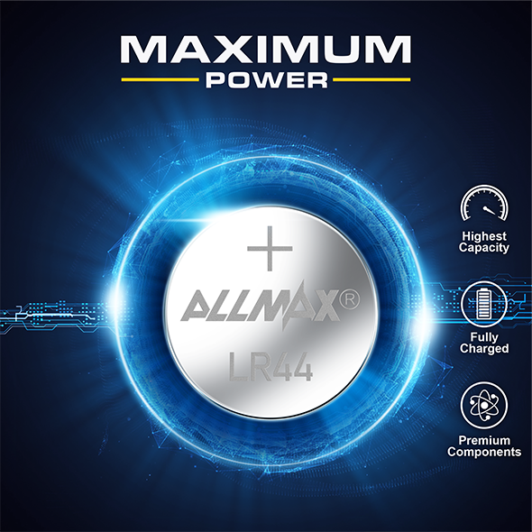 Allmax Maximum Power LR44 Alkaline Batteries are premium-grade, high-performance