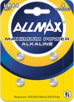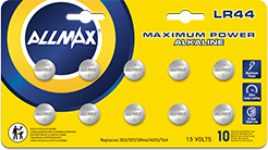 Allmax Maximum Power LR44 Alkaline Batteries are available in a variety of packaging options.
